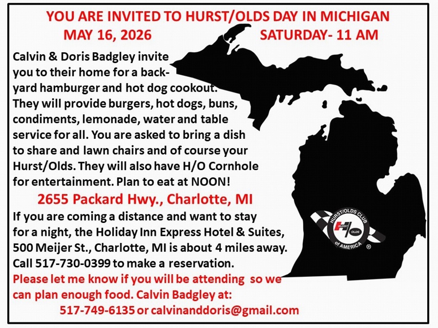 A heartfelt THANK YOU goes out to all the past members that planned and hosted a H/O Day. We sincerely appreciate your efforts in keeping the Hurst/Olds alive and well!